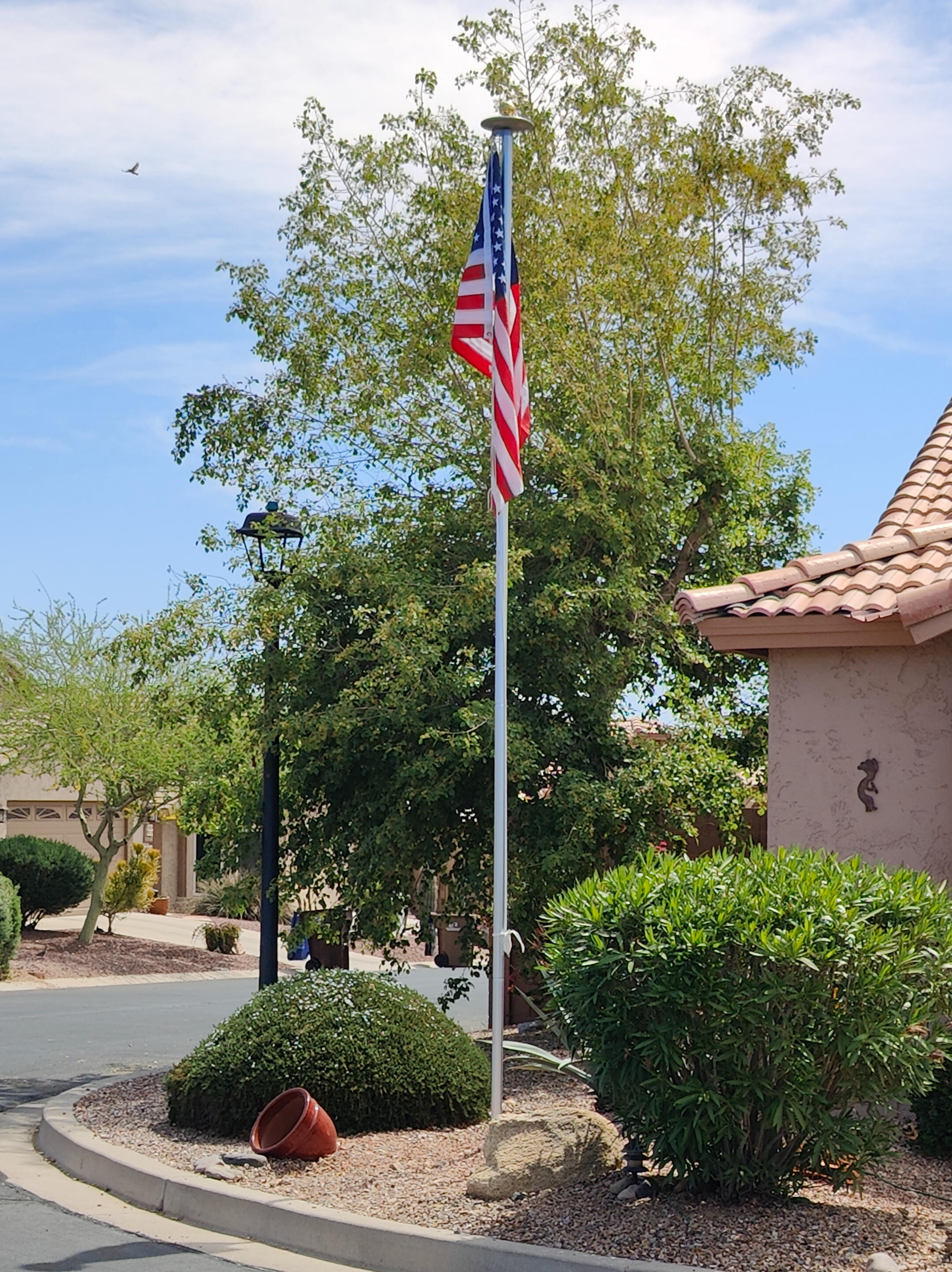 Serving Mesa and the East Valley, with 4 years experience in the flag industry and countless installations, we know flagpoles and we know how to do it right. From new in-ground flagpoles to hanging a house pole, we can instal it. You can even get a new flag and retire your old flag properly. We are here to help homeowners display their flags and can provide anything you need to fly your flags.